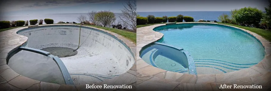 The process begins by replastering the pool. The first step is to remove the old plaster. Then, the fresh plaster is brought in using a method of spraying. Spraying the plaster does not create a clean and flat line, so the workers go over the wet plaster and smooth it out. This makes sure there are no chunks or any flaws in the plaster. Then the pool is filled with water again.